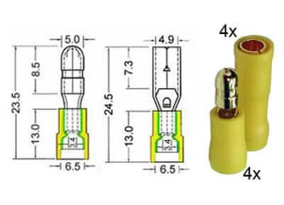 4 x Rundstecker und 4 x Rundsteckerhülsen Set vergoldet isoliert Ø 5mm gelb