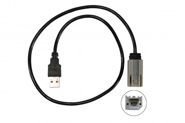 Zur Nachrüstung von Radios in Fahrzeugen mit ab Werk verbauten USB Anschluss im Mini USB Format