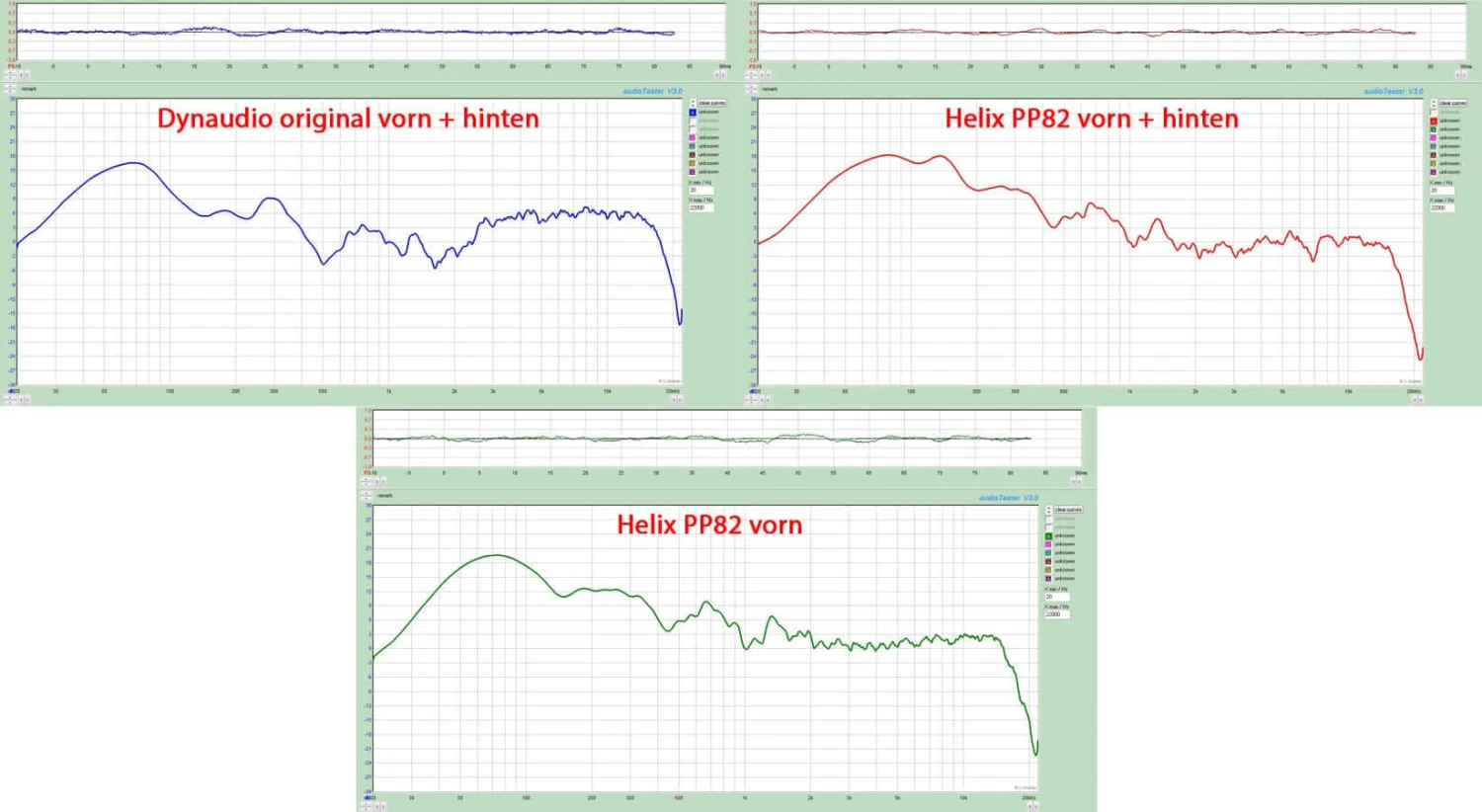 Auf den Produktbildern ist auch der Frequenzgang vorher/nacher zu sehen. Für das klanglich beste Ergebnis müssen Sie den Fader nach vorn stellen. Der Verstärker wird auf dem Träger des original VW Dynaudioverstärkers verschraubt.