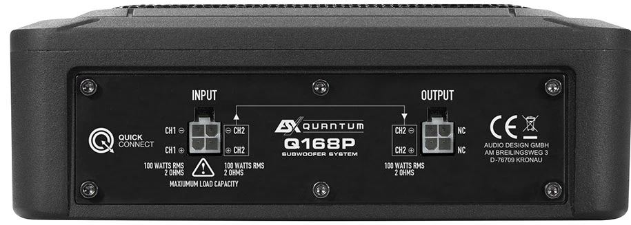 Ab sofort gibt es den kleinen und daher sehr beliebten ESX Q168 Subwoofer in einer passiven P-Variante. Der neu ins Programm genommene Q168P verzichtet auf einen integrierten Verstärker und lässt sich somit bestens extern ansteuern. Der Anschluss ist kinder-leicht, zumal keine Stromkabel verlegt werden müssen.