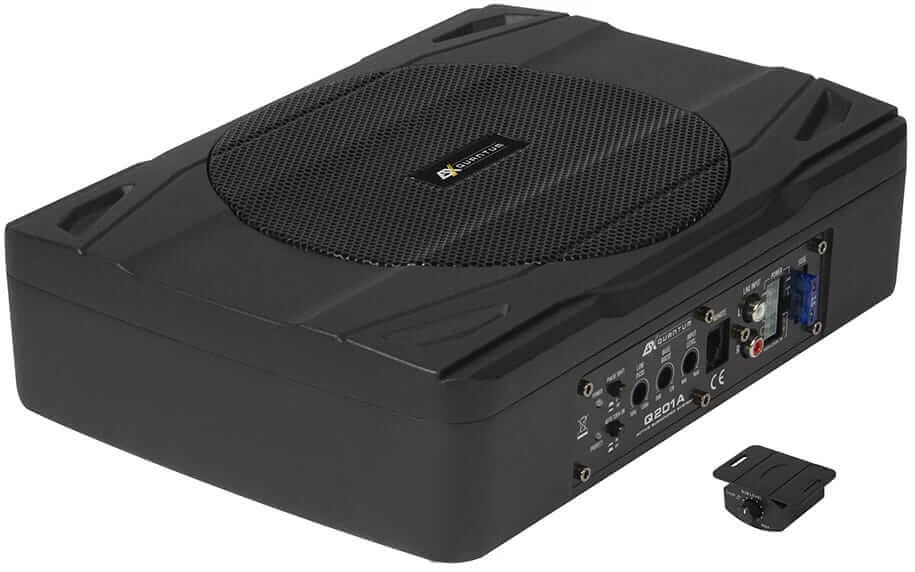 Der neue Q201A ist einer der kleinsten Untersitzsubwoofer, die man momentan am Markt findet. Mit gerade einmal 21x29x7,3 cm ist er um ca. 25% kleiner als handelsübliche Woofer in dieser Kategorie. Umso größer ist allerdings die Verblüffung, wenn man den ESX spielen hört, denn er klingt „wie ein Großer“.