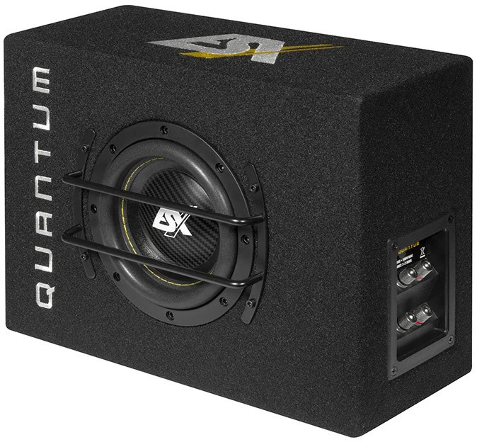 Die QUANTUM QXB Bassreflex-Gehäuse bestechen durch eine sehr kompakte Bauweise. Mit einer Anschluss-Impedanz von jeweils 2+2 Ω kann der Subwoofer auch in 4 Ω oder gar in 1 Ω betrieben werden, um das Maximum aus dem Verstärker herauszuholen. Dank der großen Schwingspulen (50 mm bei QXB6 und 64 mm bei QXB8 und dem neuen QXB10 Modell) sind diese Subwoofer neben dynamischen Basspegeln auch für hohe Leistungen ausgelegt und können mit kräftigeren Amps betrieben werden. Durch die flache Konstruktion finden die neuen QXB Gehäuse in fast jedem Fahrzeug den passenden Platz. Mit einer Gehäusehöhe von nur 16 cm kann die QXB6 Box sogar in einem doppelten Boden des Kofferraums Platz finden oder z.B. hinter dem Sitz. Durch die mitgelieferten Schutzgitter werden in allen Modellen die Tieftöner optimal geschützt. Bei QXB6 und QXB8 werden zusätzlich noch optional verwendbare Standfüße mitgeliefert, bei der die Boxen quasi auf dem Bauch im Kofferraum platziert werden können.