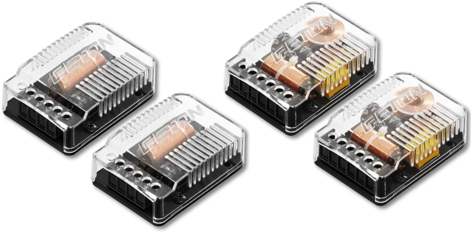 Besonderer Wert wurde auf die Belastbarkeit der Weichen und auf ihre Kompaktheit hinsichtlich der Einbaufreundlichkeit gelegt. So bietet die Hoch/Mitteltonweiche neben der hochwertigen Luftspule auch vorzügliche, klangneutrale MKT Kondensatoren, sowie eine Pegelanpassung für die Hochtöner. Doppelt belüftete Gehäuse mit geprägtem ETON Logo runden die Frequenzweichen optisch ab.