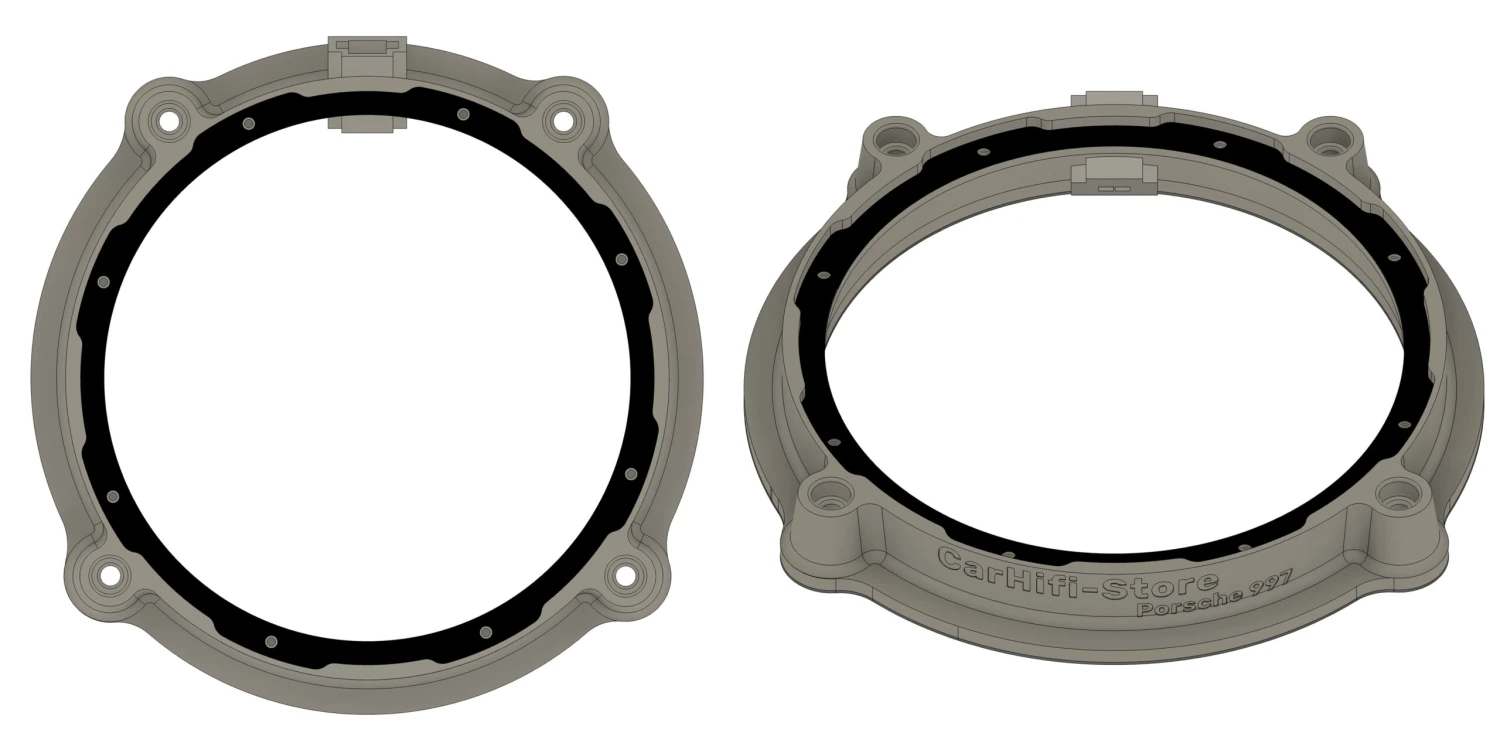 Flexmount Lautsprecherringe passend für Porsche 997 und andere – für alle Compose 200mm Tieftöner inkl. integriertem Anschlussterminal