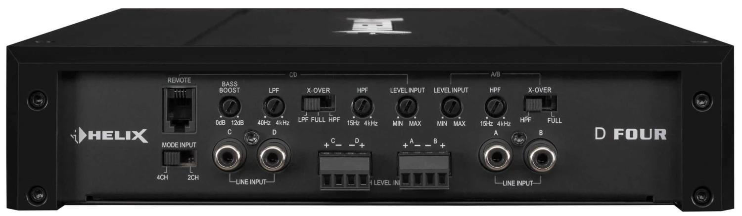 4-Kanal Verstärker mit integrierter, aktiver Frequenzweiche
