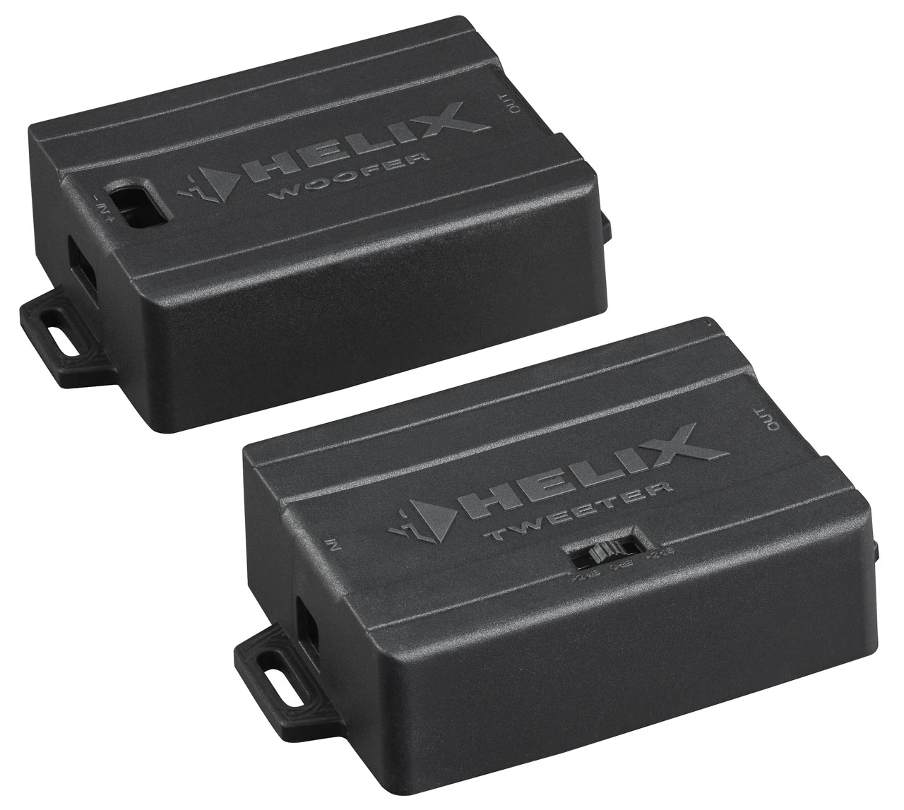 - Separate, zweigeteilte „Flex-Crossover“ Frequenzweiche mit 12/12 dB Flankensteilheit, Sperrkreis und 3-stufig schaltbarer Hochton-Pegelanpassung – perfekt geeignet für den Verbau in Fahrzeugen mit getrennten Einbauplätzen von Hoch- und Tiefmitteltöner
