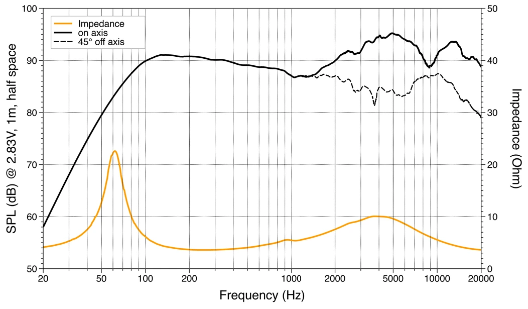 Der Hochtöner aus Tetolon und der Neodym Magnet sind mit besten Off-Axis Eigenschaften und einem außergewöhnlich breiten Frequenzgang, für einen detailreichen und luftigen Sound ausgestattet.