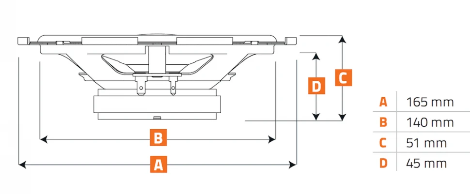 - Der Lautsprecher hat einen flachen Korb und ist, genauso wie der kleine Hochtöner, einfach einzubauen. Der Hochtöner ist im Lautsprecher integriert.
