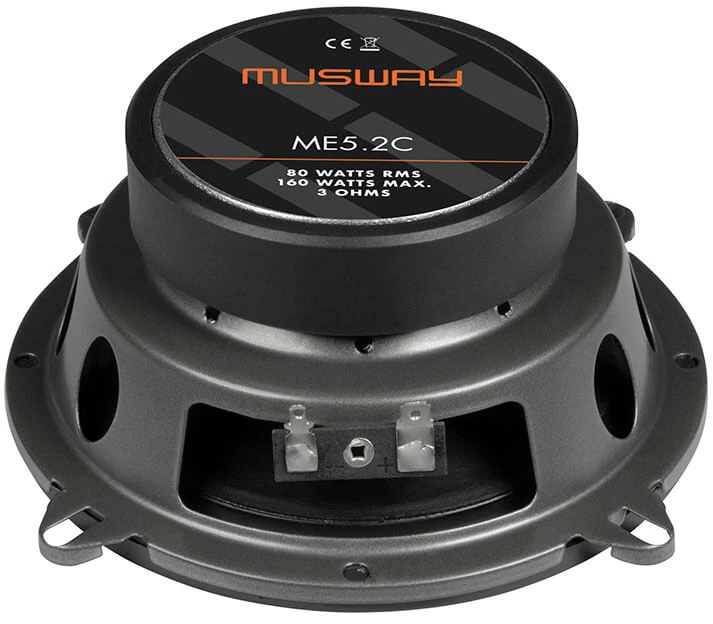 Die ME Lautsprecher sind die Einstiegsmodelle von MUSWAY. Selbst diese sind schon mit kräftigen Magnetantrieben ausgestattet, die unter anderem eine hohe Belastbarkeit mit bis zu 200 Watt Musikleistung ermöglichen. Polypropylen-Membranen mit Gummisicken garantieren einen tiefen und kräftigen Bass und eine sehr hohe Langlebigkeit. Für ein optimales Abstrahlverhalten wurden in die Basslautsprecher von ME6.2C, ME5.2C und ME6.2W Phase-Plugs eingesetzt. Der 2,5 cm Gewebe-Neodym-Hochtöner hat nicht nur hervorragende Klangeigenschaften, sondern ist auch noch besonders flexibel einsetzbar, da der äußere Plastikring abnehmbar ist und sich dadurch der Durchmesser auf kompakte 4,35 cm verringert – passend für das Spiegeldreieck oder die A-Säule. Für einfache Verbaubarkeit sorgen die für den Hochton- und asszweig getrennten Inline-Frequenzweichen, die kaum Platz beanspruchen.