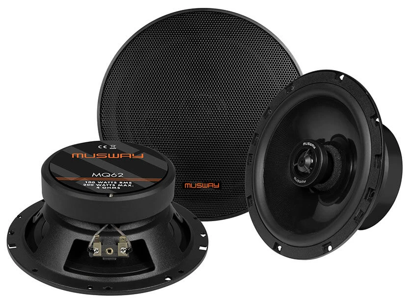 Die MQ Lautsprecher sind die Top-Modelle im MUSWAY Speaker-Programm. Sie zeichnen sich durch präzise Klangwiedergabe, hohen Wirkungsgrad und hohe Belastbarkeit aus. Dies wird durch sehr große 16,6 Unzen Magnetantriebe in Verbindung mit 3 cm Schwingspulen (bei allen 16,5 cm Modellen) erreicht. Membranen aus Polypropylen mit Grafit-Verstärkung und Glasfiber-Staubschutzkalotten setzen die so erzeugte Kraft souverän um. Sie besitzen die nötige Stabilität, um den kräftigen Antrieb in lineare, verzerrungsfreie Musiksignale umzusetzen. Damit der Hochtonbereich ebenfalls klar und sauber abgebildet wird, setzen die Entwickler fein abgestimmte 2,5 cm Gewebe-Neodymkalotten ein. Komplettiert werden die Sets mit den kompakten Inline-Weichen, die im Bass- und Hochton-Zweig getrennt und daher einfach zu installieren sind.