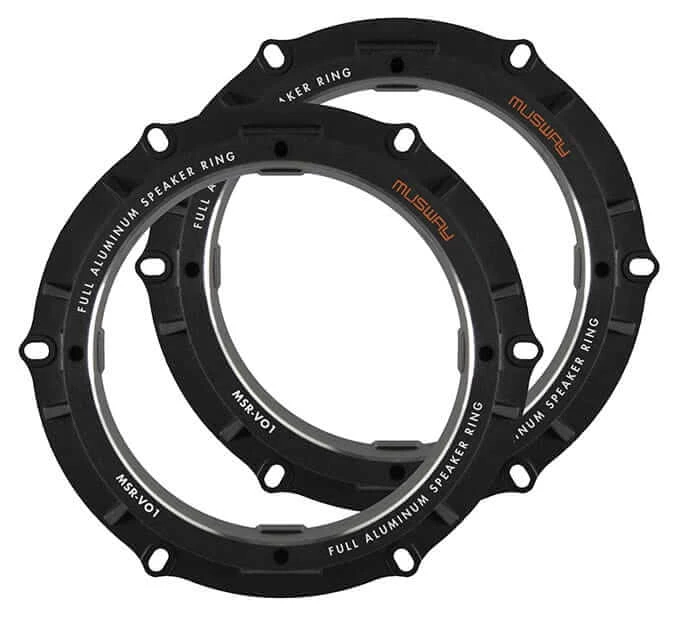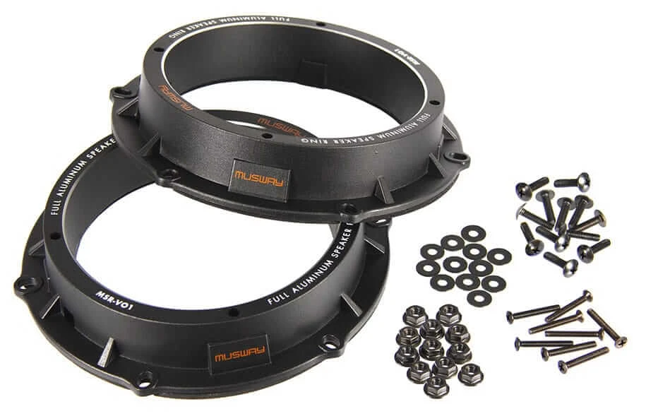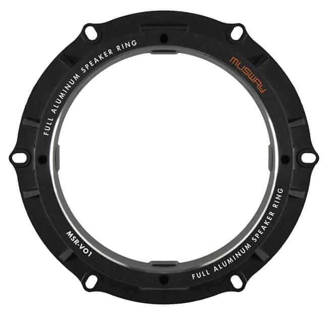 Die MUSWAY Adapterringe überzeugen schon beim Auspacken mit hoher Anfassqualität, denn das satte Gewicht der aus vollem Aluminium gefertigten Einbauringe liegt extrem gut und schwer in der Hand. Auf der Unterseite befindet sich ein rundum aufgeklebter Schaumstoffring, der eine optimale Dichtung zwischen Adapterring und Fahrzeugblech bietet. Genial: Unter der Dichtung wurden im Alu-Adapterring massive Messingmuttern eingearbeitet. Diese bieten den mitgelieferten M4 Gewindeschrauben perfekten Halt für den zu montierenden Lautsprecher. Kombiniert man die MSR Adapterringe zusätzlich mit den MSB165 Silikon-Manschetten, sind ideale „Arbeitsbedingungen“ für die Lautsprecher geschaffen. Dem audiophilen Klanggenuss steht nichts mehr im Wege.