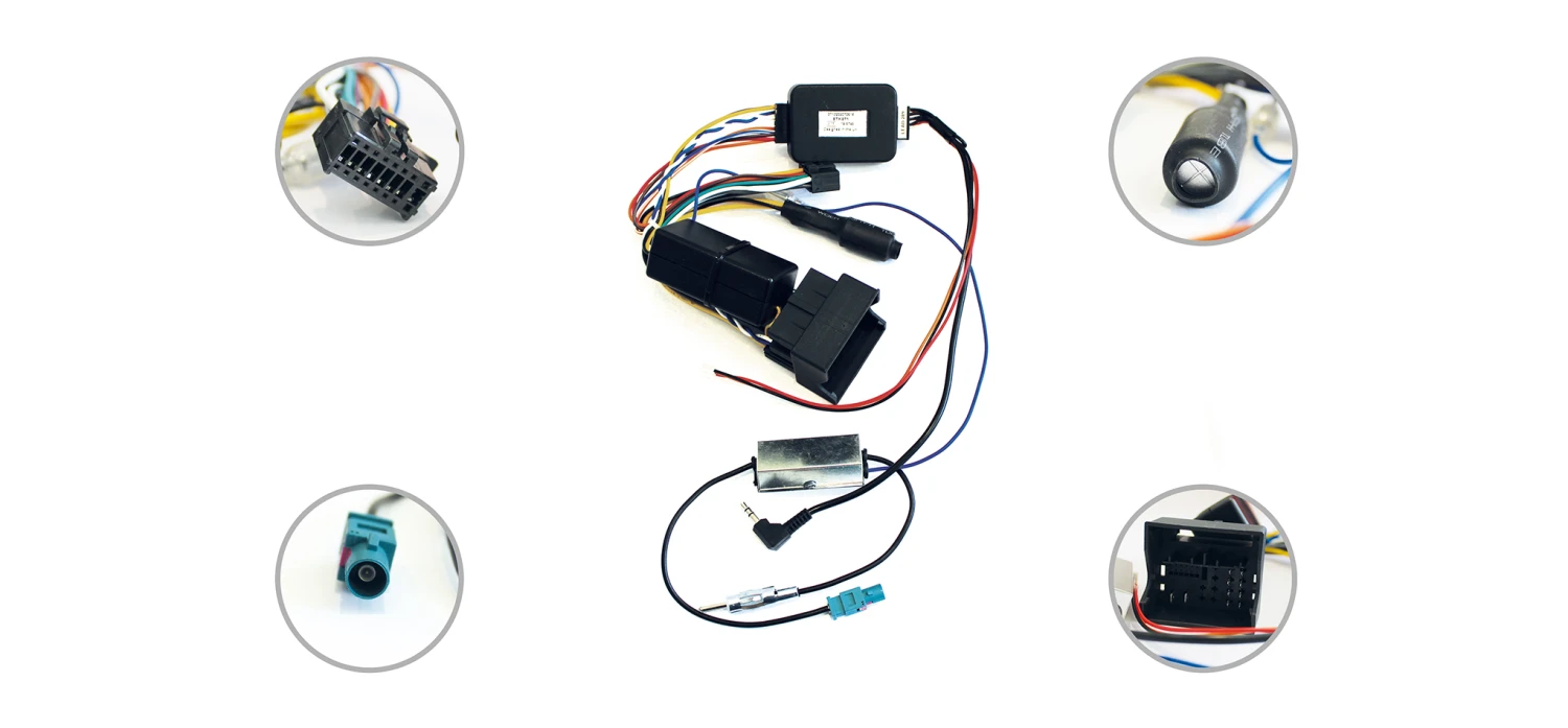 Adapter für Pioneer AVIC-Fx Navigationsgeräte zur Anbindung der Park-Distance-Control und Climatronic Anzeige auf dem Navigationsbildschirm. Mit Unterstützung der Lenkradtasten und Phantomspeisung. Nur für VW/Seat/Skoda Fahrzeuge mit 52-poligen MIB Anschluss