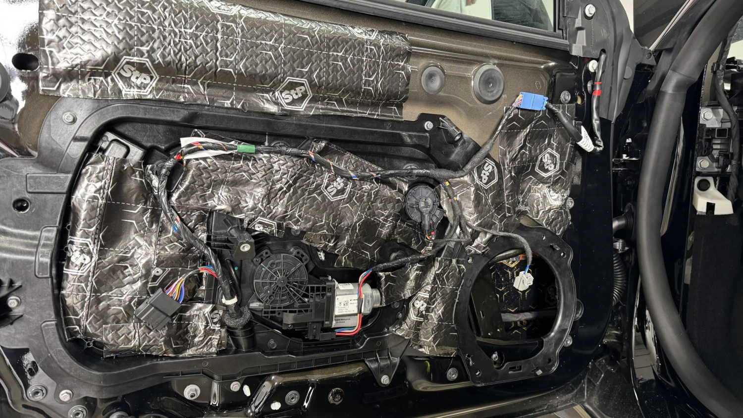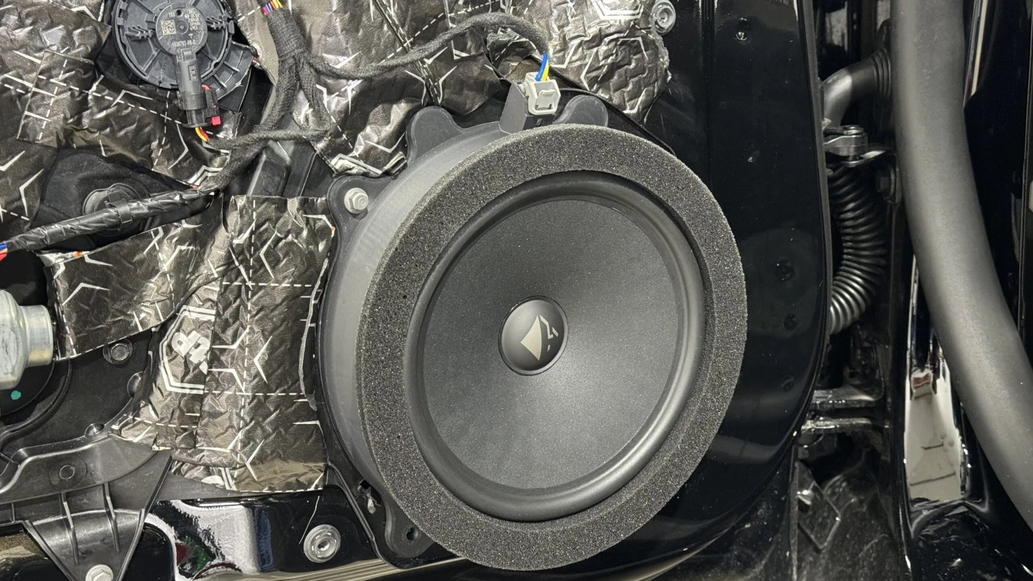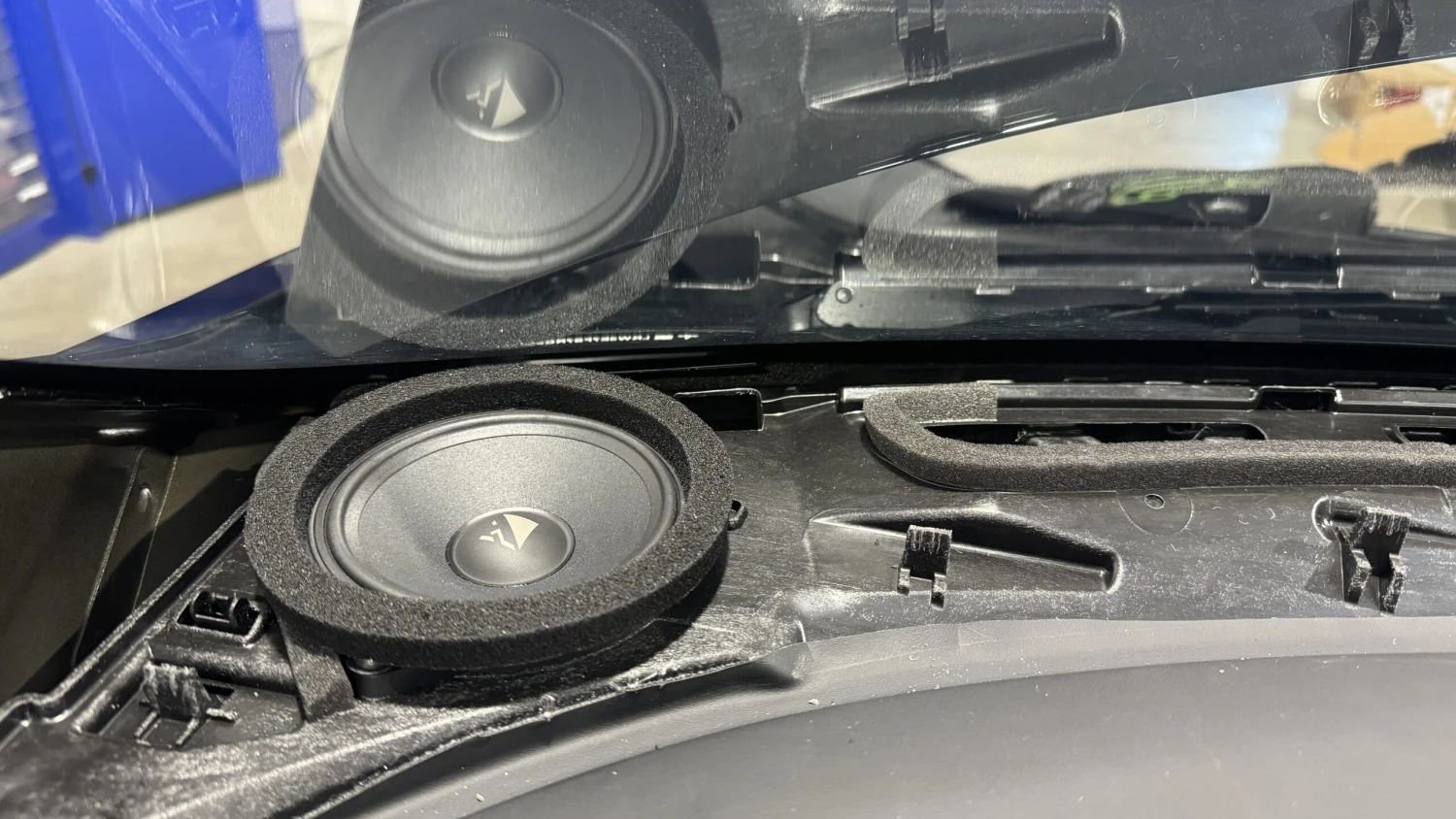 Die DSP Endstufe wird mit dem mitgelieferten Kabelsatz an der Steuereinheit angeschlossen und Nähe der Mittelkonsole/Beifahrerfußraum verbaut. Für den neuen Subwoofer wird ein Kabel in die Mulde hinten verlegt, der Woofer findet dort sein neues zu Hause. Nach der Türdämmung kommen die neuen Tieftöner mit unseren 3D gedruckten Ringen verschraubt und am original Stecker angeschlossen, gleiches gilt für die Hochtöner sowie die Mitteltöner und den Koaxial Lautsprecher auf dem Armaturenbrett, welche die original Breitbänder ersetzen. Da der Umbau doch recht aufwändig ist bieten wir den Einbau gern vor Ort an.